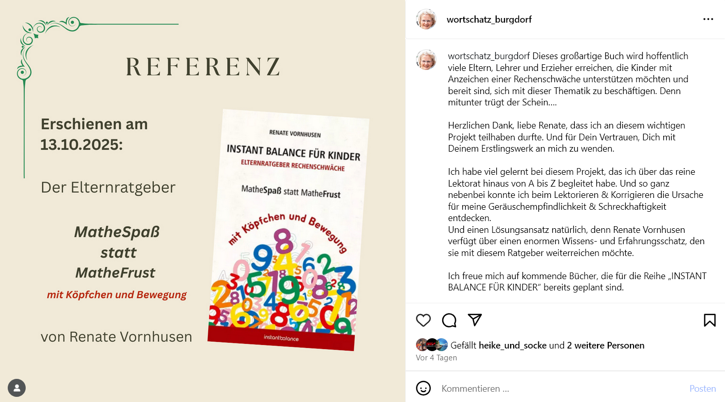 Lektorat, Korrektorat & Begleitung des Projekts inkl. Layout; Buch - Instant Balance für Kinder, Elternratgeber Rechenschwäche: