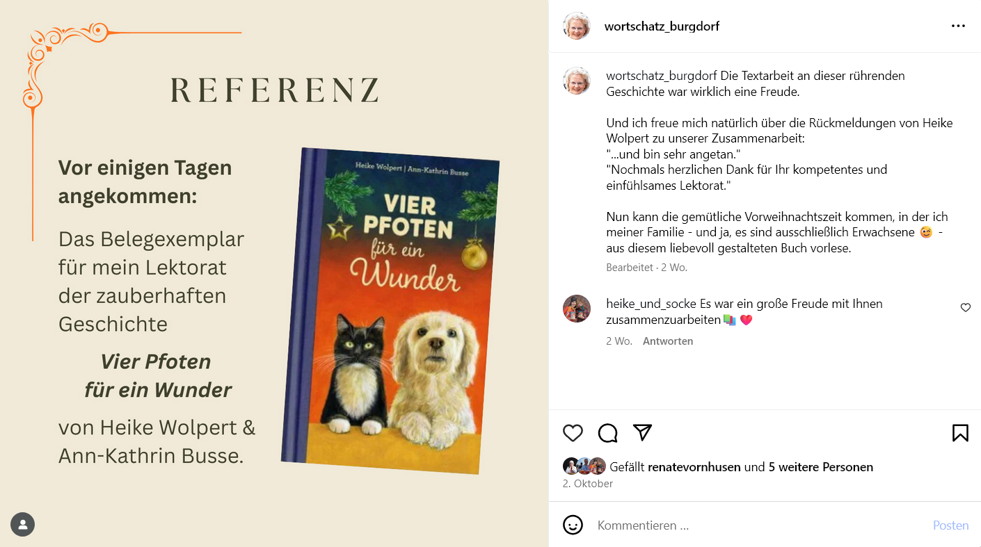 Manche lernen den Beruf der Lektorin und andere sind es einfach (technische Details eignen sich letztere schlichtweg aus Liebe zum Handwerk ebenfalls im Handumdrehen an 😊). Deine Begabung, mit Menschen und Worten umzugehen, ist eine herrliche Kombination - allererste Sahne."